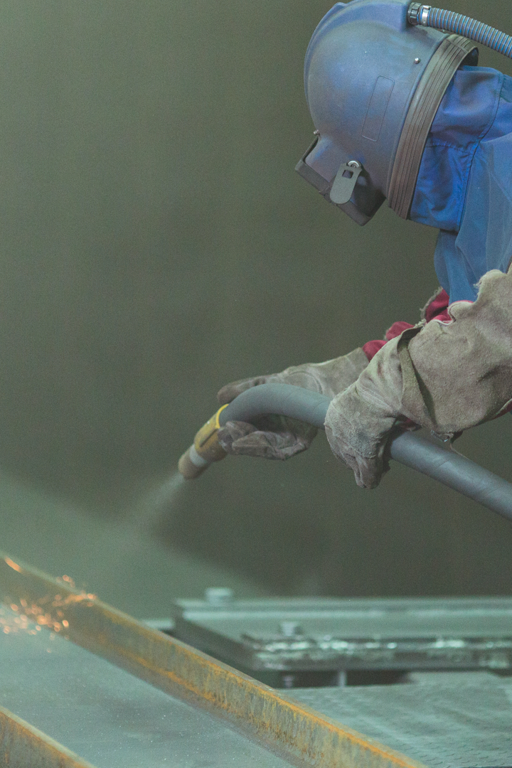 A tisztítás során nagy nyomású levegővel fémszemcséket juttatunk a munkadarabokra. A szemcseszórás eljárás a legalkalmasabb a szennyezett, korrodált fémfelületek tisztítására. A szemcseszóró teremben vas, acél alapanyagok, hegesztett szerkezetek felülettisztítása, revétlenítése, festés előtti felület előkészítése történik.